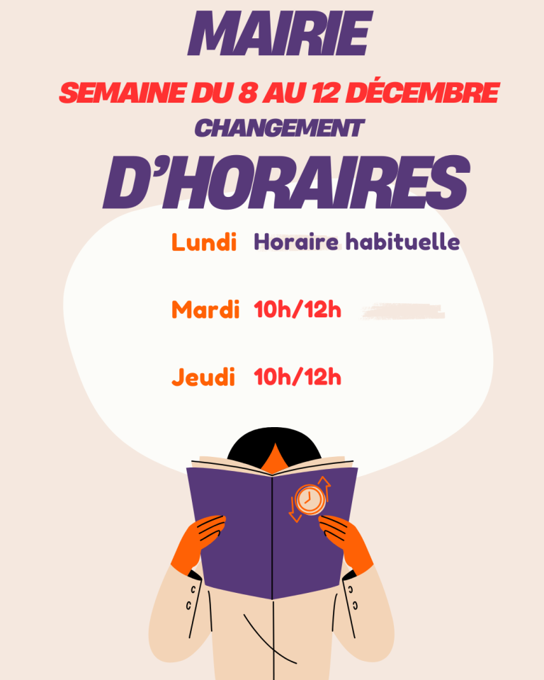 Ouverture Mairie – Horaires exceptionnelles du 8 au 12 décembre 2025