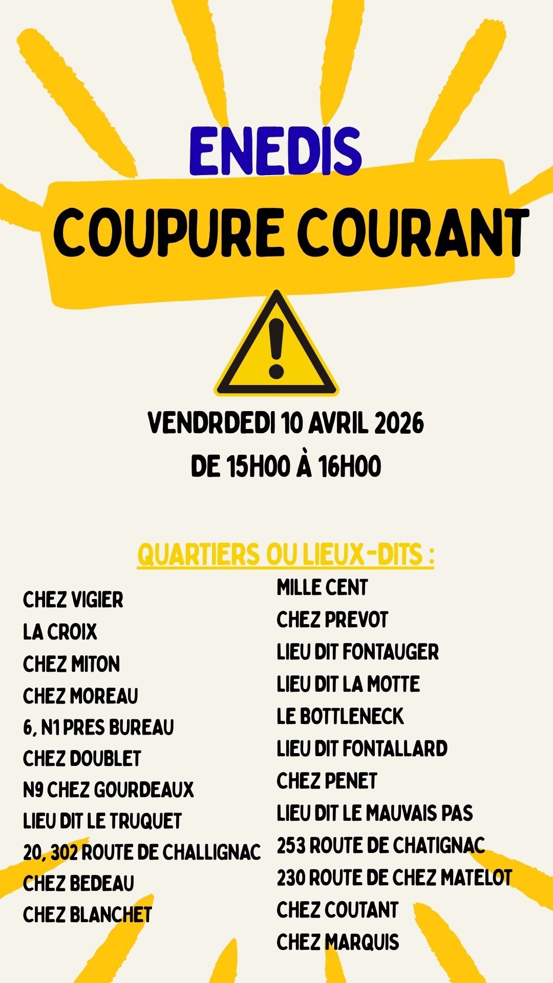Coupure ENEDIS 10 avril 2026