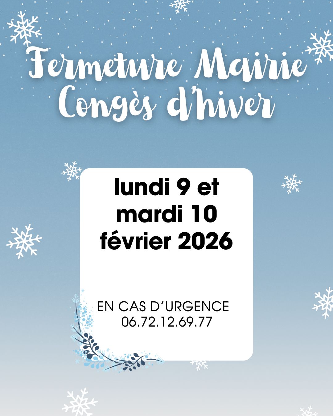 Fermeture mairie pour congés
